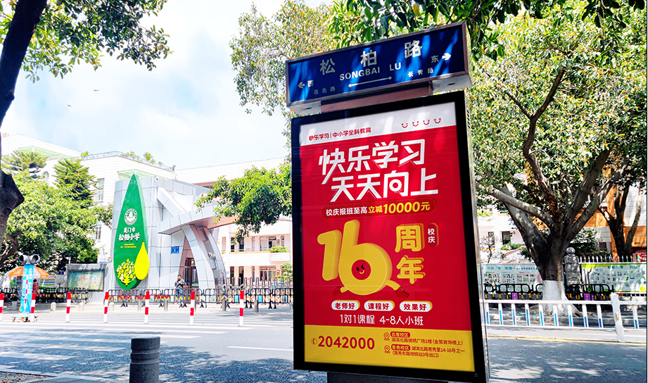 快樂(lè)學(xué)習(xí)全城多個(gè)黃金路段投放,覆蓋廈門各大中小學(xué)周邊路段及交叉口,定位精準(zhǔn)人群,點(diǎn)對(duì)點(diǎn)投放。