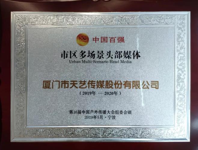 廈門市天藝傳媒股份有限公司創(chuàng)立于1993年,業(yè)務(wù)范圍覆蓋品牌管理、創(chuàng)意策劃、整合營銷、媒體投放等傳播鏈條。公司發(fā)展26年,在戶外傳媒領(lǐng)域極具市場競爭優(yōu)勢,形成了城市路名牌、公交候車亭、站名牌、廈門國際郵輪中心媒體、廈門航空艙內(nèi)媒體、廈門機(jī)場手推車網(wǎng)約車媒體等“海·陸·空”360°全媒體覆蓋。在此次會議中,廈門市天藝傳媒股份有限公司有幸榮獲《中國百強(qiáng)市區(qū)多場景頭部媒體》的獎項(xiàng)。