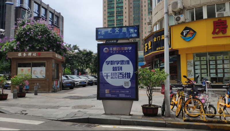 廈門千思百維教育聯(lián)袂天藝傳媒公司在廈門市各大重點(diǎn)路段針對(duì)性投放路名牌廣告。
